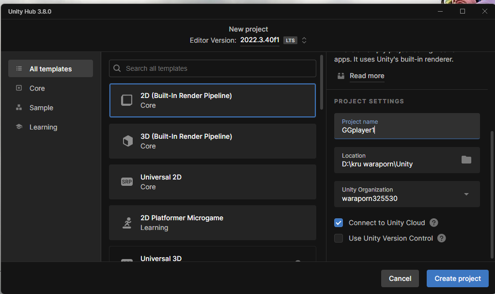 2 หน้าต่างโปรเจคที่สร้างปรากฎ