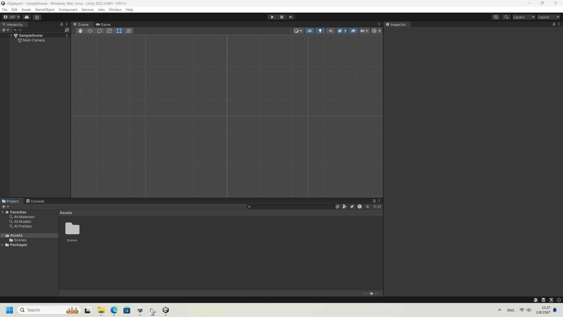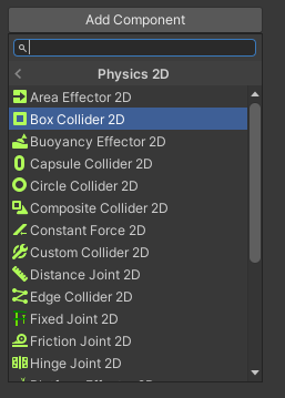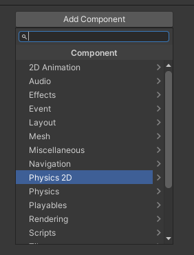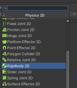 34 คลิกปุ่ม Add Component อีก เลือก Physics 2D เลือก Rigidbody 2D
