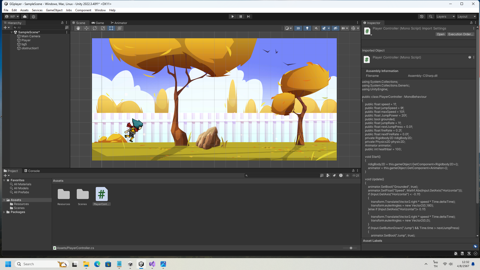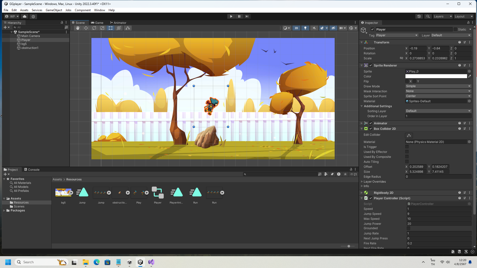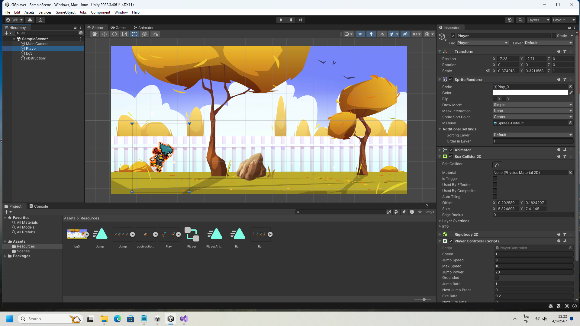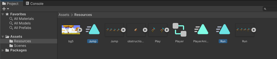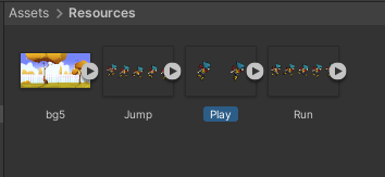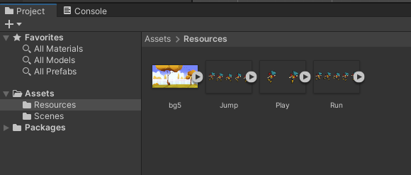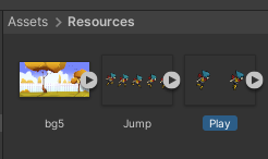 3 ที่ Assets สร้างโฟลเดอร์ Resources เพื่อเก็บตัวละครที่เป็นไฟล์ png (ท่ายืน ท่าวิ่ง ท่ากระโดด ท่ายิง ท่าฟัน ท่าตาย) สิ่งกีดขวาง (ก้อนหิน ที่กั้น) และฉากเกม (ฉากแต่ละด่าน)