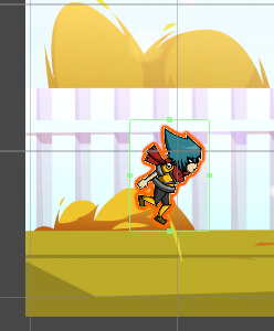 21 แต่งฉาก คลิกซ้ายที่ฉากชื่อ bg5 และสิ่งกีดขวางชื่อ obstruction1 ลากไปวางบน Scene