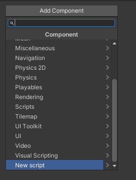 56 คลิกที่ Scene คลิก Player ที่หน้าจอโปรแกรมบนซ้าย จากนั้นคลิกปุ่ม Add Component ทางด้านขวามือโปรแกรม เลือก New script ตั้งชื่อเป็น PlayerController