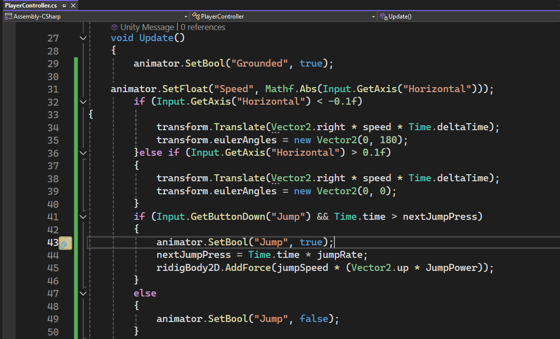 43 ตั้งชื่อเป็น Jump เช็คว่าตัวละครกระโดดอยู่หรือไม่