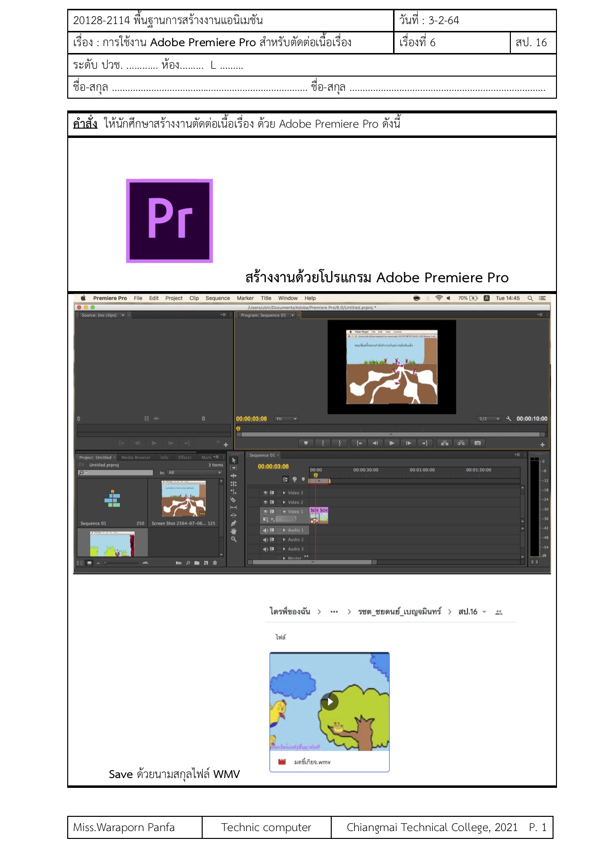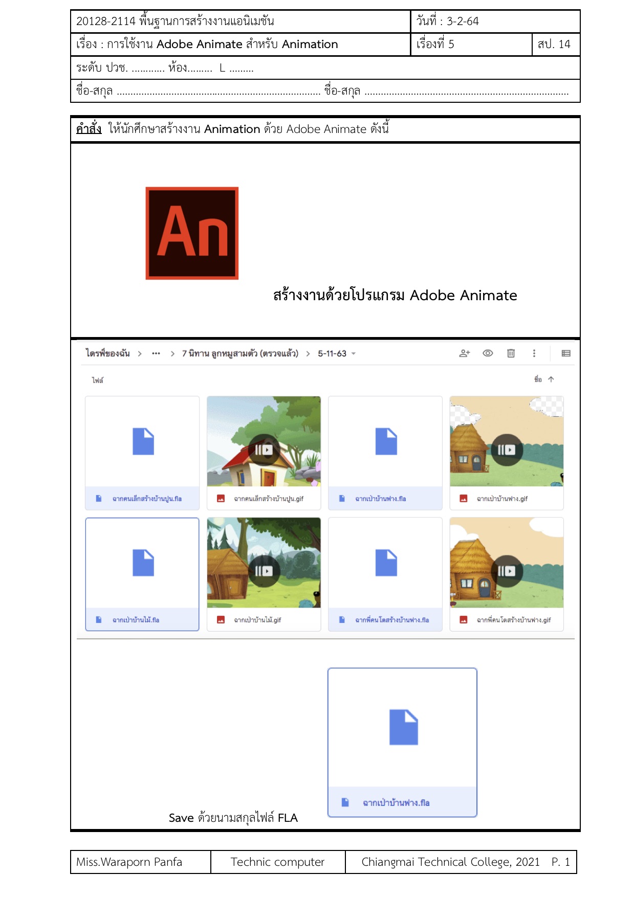 รายวิชา พื้นฐานการสร้างงานกราฟิกและแอนิเมชัน
