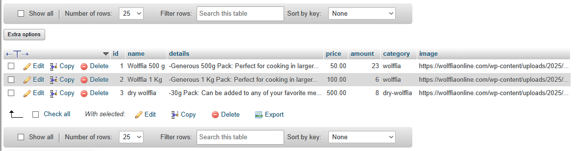 1.2 เปิด phpmyadmin ที่ Database ของคุณ สร้างตารางชื่อ products (สามารถ Download file ตารางที่สร้างสำเร็จแล้ว ได้จากไดร์ฟ ที่โฟลเดอร์ใบงาน)