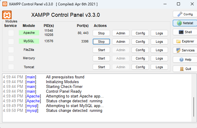 1.1 เปิด XAMPP เพื่อเปิดการใช้งานฐานข้อมูล phpmyadmin