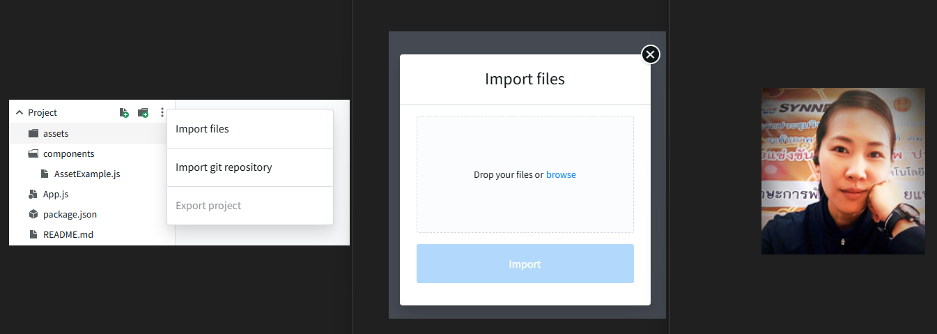 2.5 ซ้ายมือที่โฟลเดอร์ assets ให้ Import files รูปของนักศึกษา จำนวน 1 รูป
