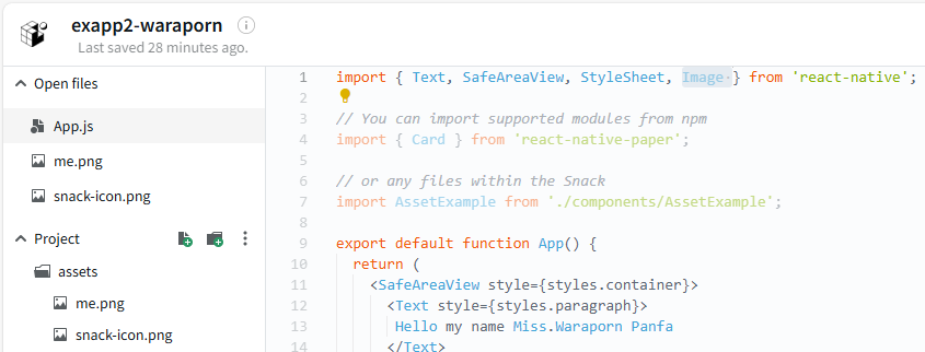 2.6 ไฟล์ App.js เพิ่มการเรียกใช้รูปภาพ Image
