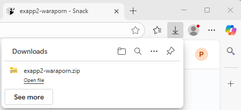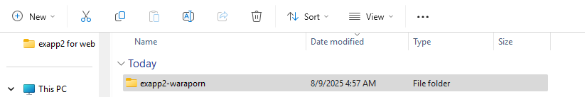 2.8 Download project จะได้โฟลเดอร์ชื่อ exapp2-waraporn ให้นำโฟลเดอร์ดังกล่าว ส่งในไดร์ฟงาน