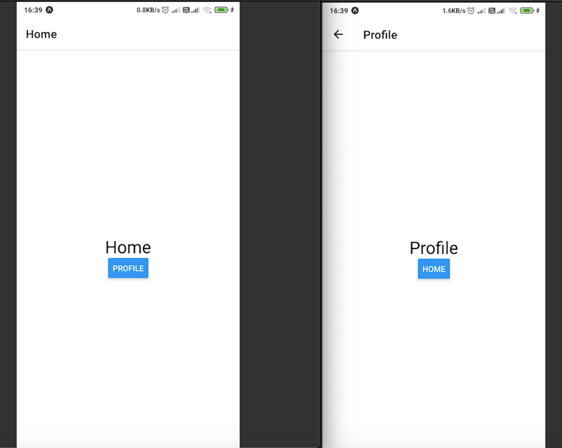 เราจะสร้างหน้าจอ 2 จอ ชื่อ HomePage และ ProfilePage เมื่อแตะปุ่มจะสามารถเปลี่ยนจากหน้า HomePage เป็น ProfilePage สลับกันไปมาได้ โดยทำได้ดังนี้