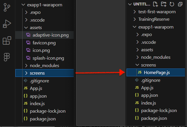 2.4 สร้างโฟลเดอร์ชื่อ screens และสร้างไฟล์ชื่อ HomePage.js
