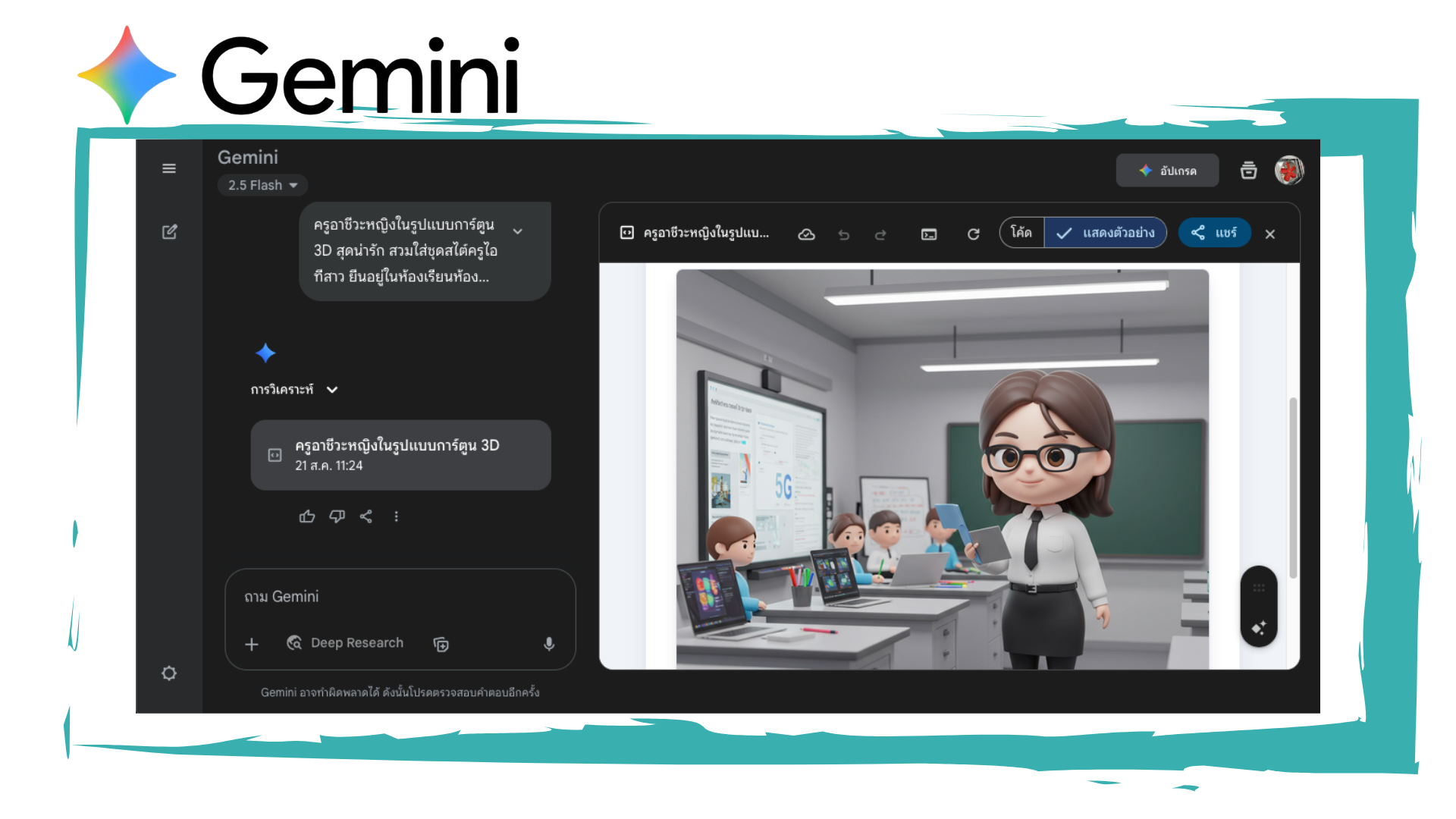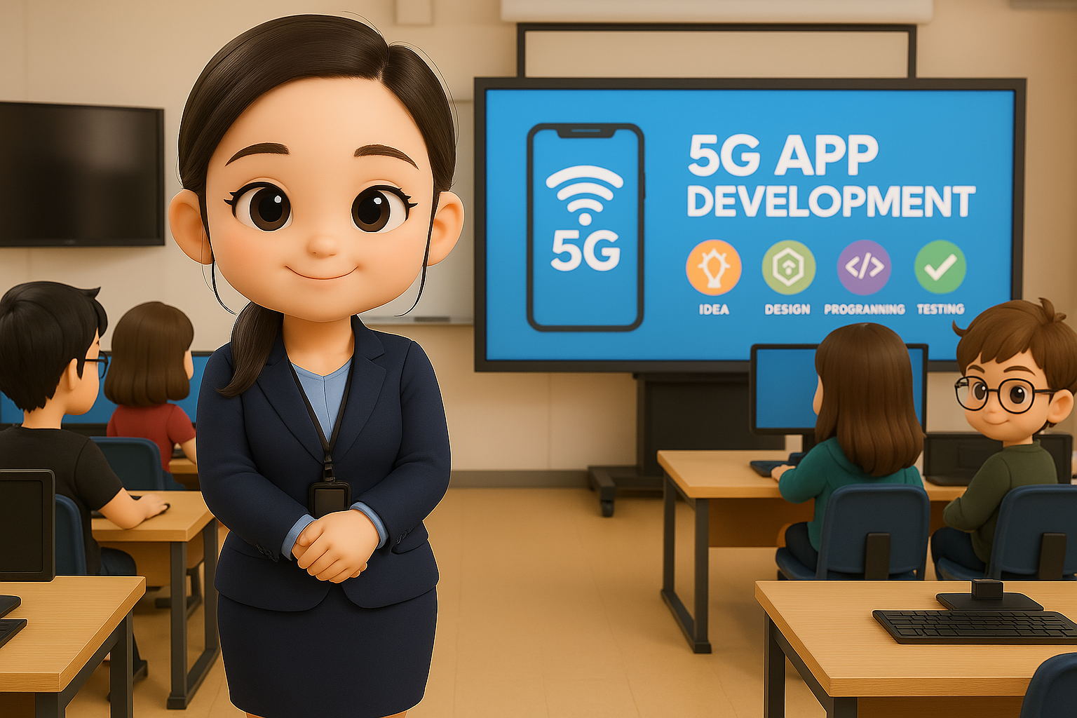 prompt : ครูอาชีวะหญิงในรูปแบบการ์ตูน 3D สุดน่ารัก สวมใส่ชุดสไต์ครูไอทีสาว ยีนอยู่ในห้องเรียนห้องปฏิบัติการพร้อมสื่อยุคใหม่ เป็นเวิร์กช๊อปเนื้อหาเกี่ยวกับการสร้างแอพพลิเคชันรองรับ 5G มีผู้เรียน 4 คน มีหน้าจออัจฉริยะสำหรับช่วยสอน แสงนุ่มนวล ตัวละครแสดงให้เห็นเต็มตัวในสัดส่วนแบบจิบิ (หัวโตตัวเล็ก) ในอัตราส่วนภาพ 16:9