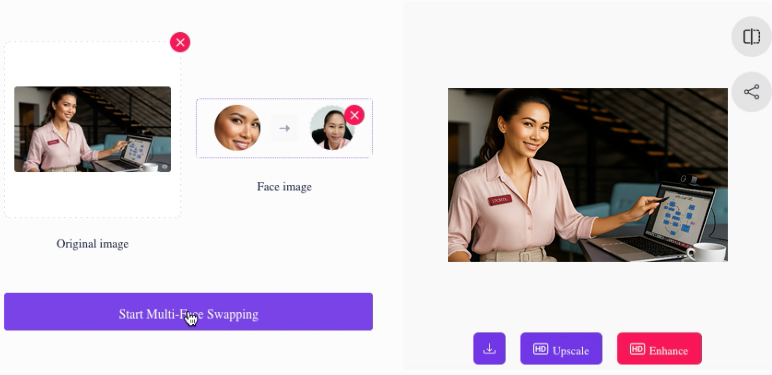 AI face swaps : การสลับหน้าด้วย AI ใช้อัลกอริทึมปัญญาประดิษฐ์เพื่อแทนที่ใบหน้าของบุคคลหนึ่งในรูปภาพหรือวิดีโอด้วยใบหน้าของบุคคลอื่นได้อย่างราบรื่น อัลกอริทึมเหล่านี้จะวิเคราะห์ลักษณะใบหน้า การแสดงออก และสภาพแสง จากนั้นจึงซ้อนทับใบหน้าที่เลือกลงบนรูปภาพหรือวิดีโอเป้าหมาย เพื่อให้ได้ภาพที่สมจริงยิ่งขึ้น