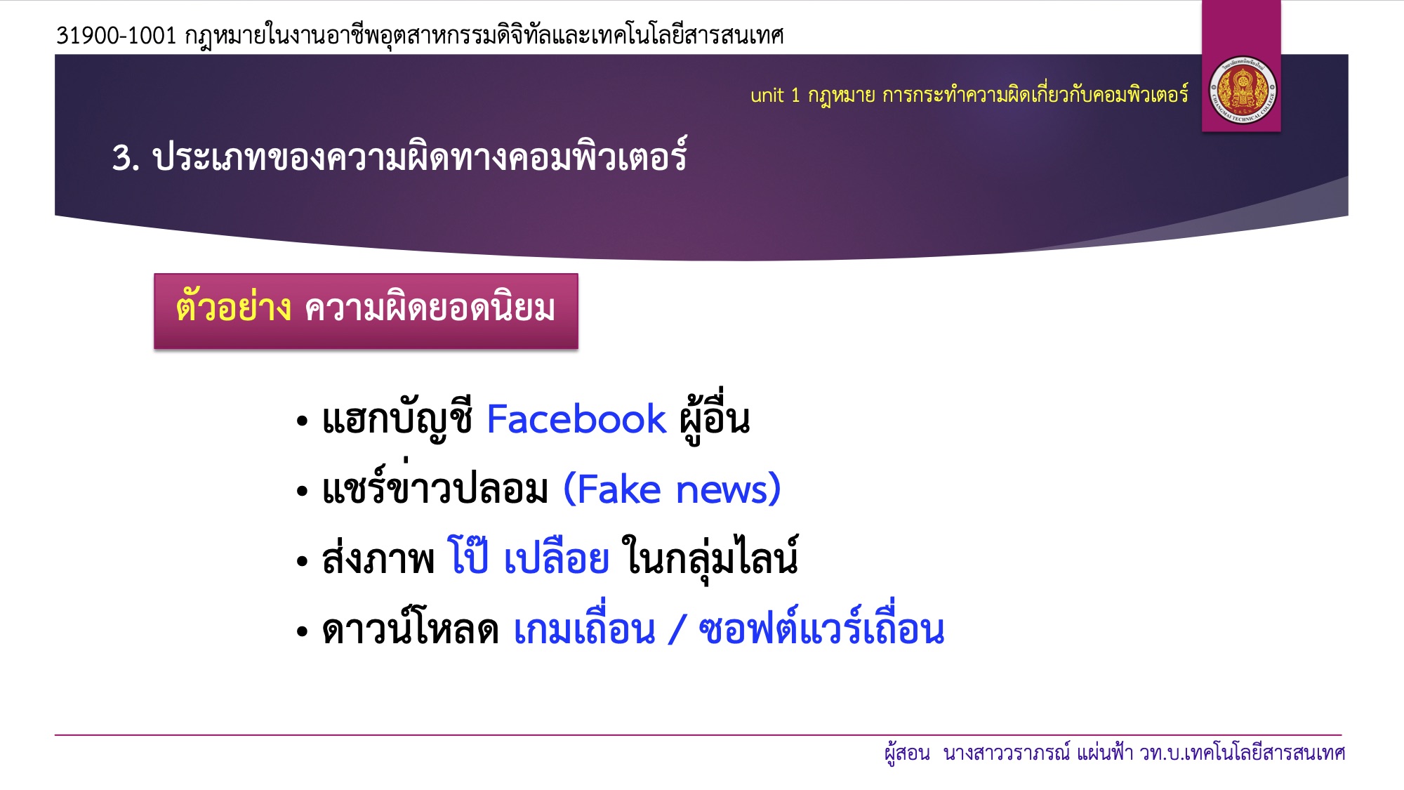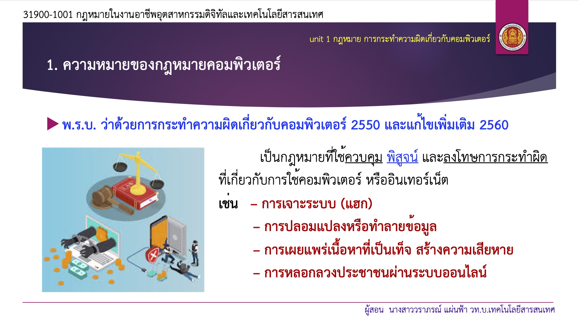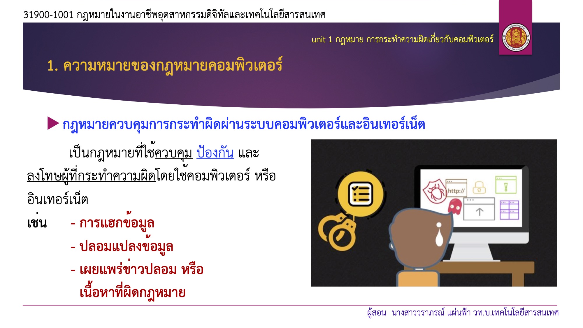 • 1. กม.การกระทำความผิดเกี่ยวกับคอมพิวเตอร์